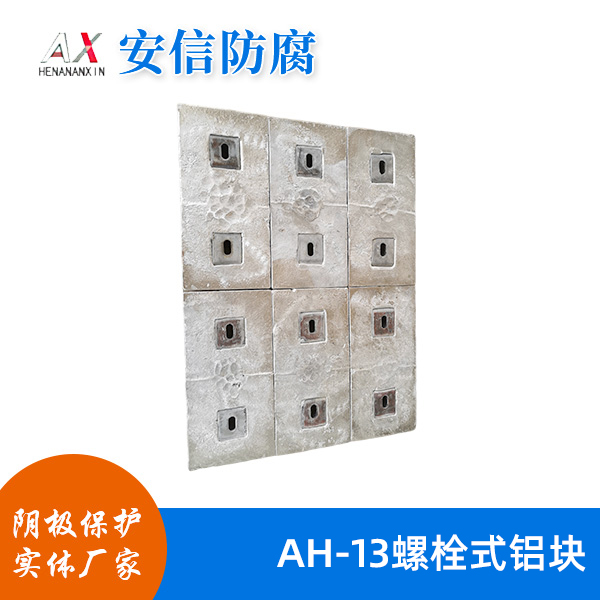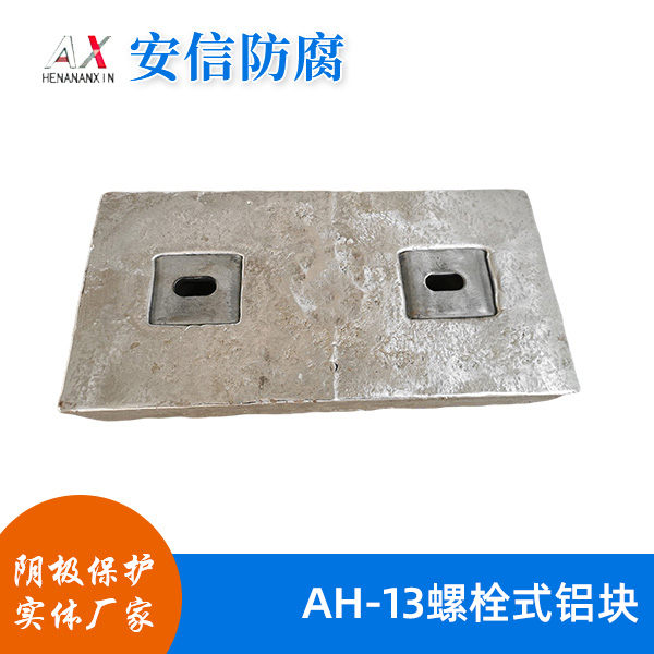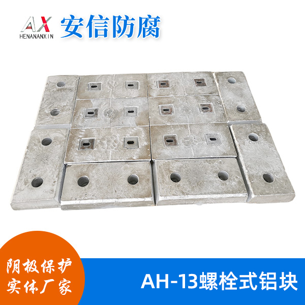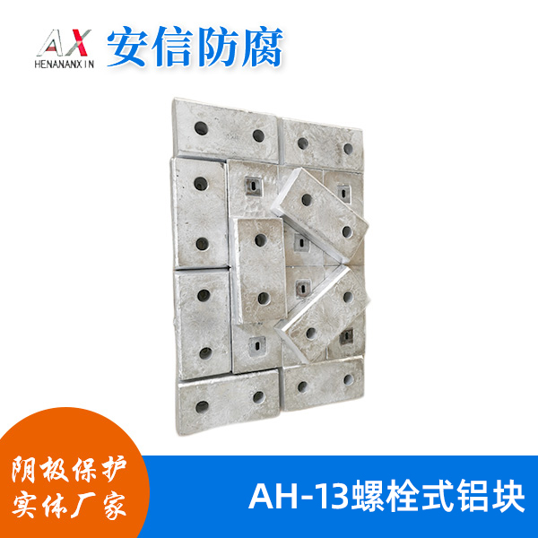 常用的鋁合金陽極有Al-Zn-In系和Al-Zn-Hg系陽極,適用于海水中的船舶、碼頭港口與海洋設施、海水冷卻水系統和儲罐沉積水部位等構筑物的陰極保護。鋁合金陽極生產執行GB/T 4948-2002《鋁-鋅-銦系合金犧牲陽極》。